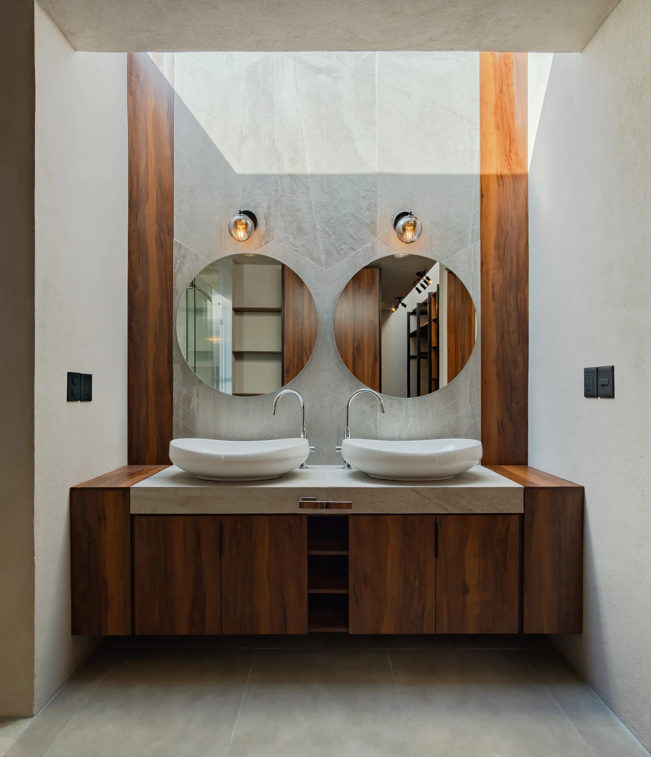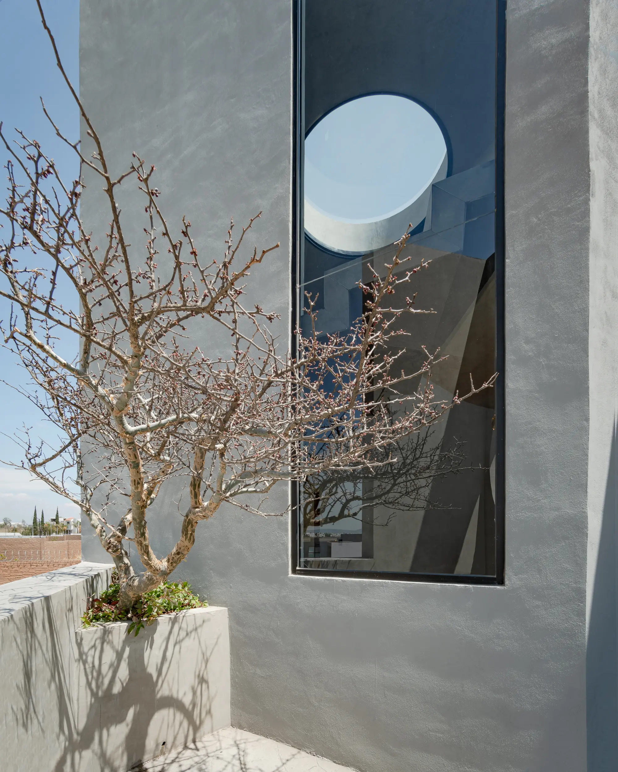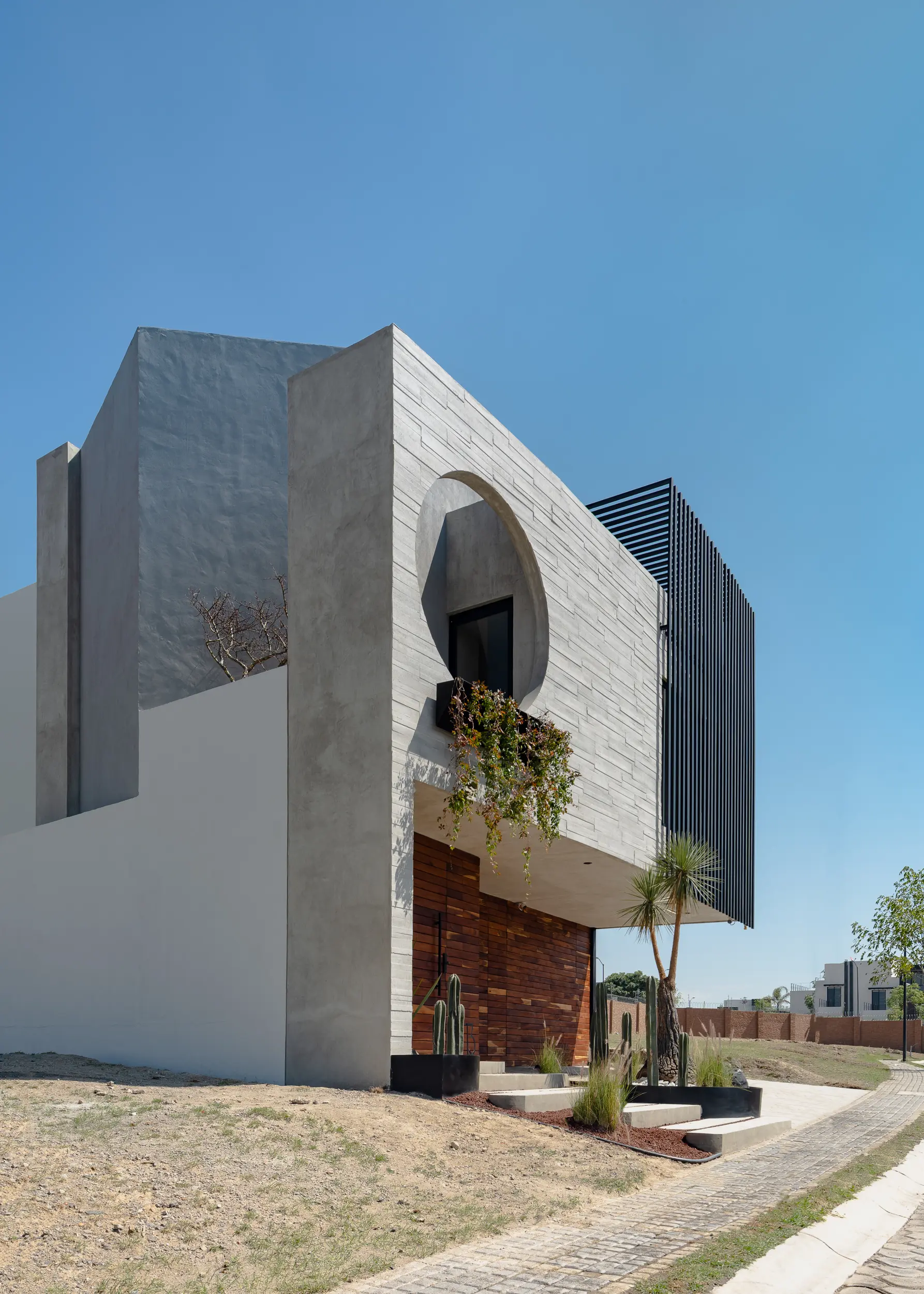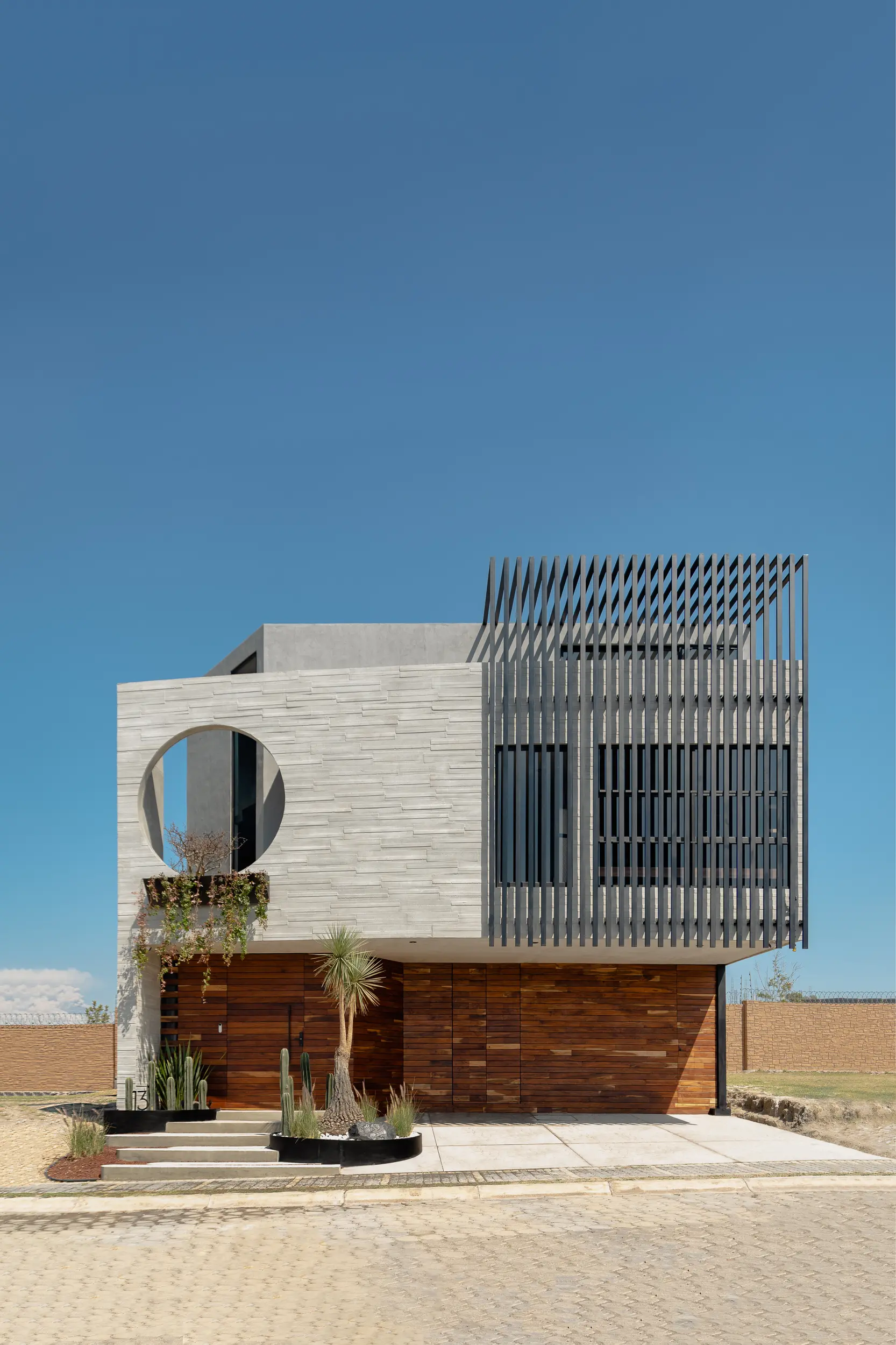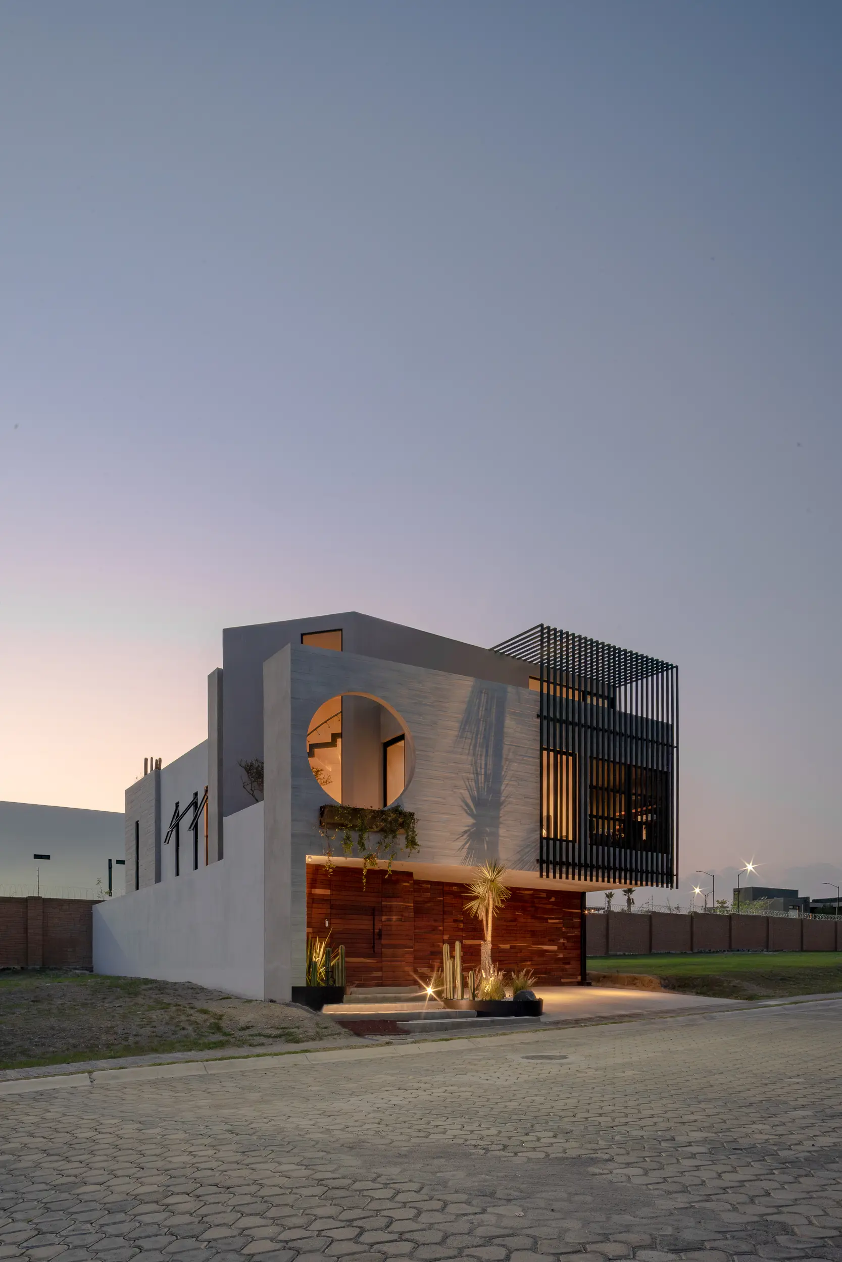 Casa Bruselas es una residencia contemporánea concebida como una escultura habitable, donde la geometría pura y la honestidad material guían el diseño. El proyecto se articula en torno a un vacío circular que funciona como gesto simbólico y estructural, permitiendo la entrada de luz y convirtiéndose en el ícono visual de la vivienda.