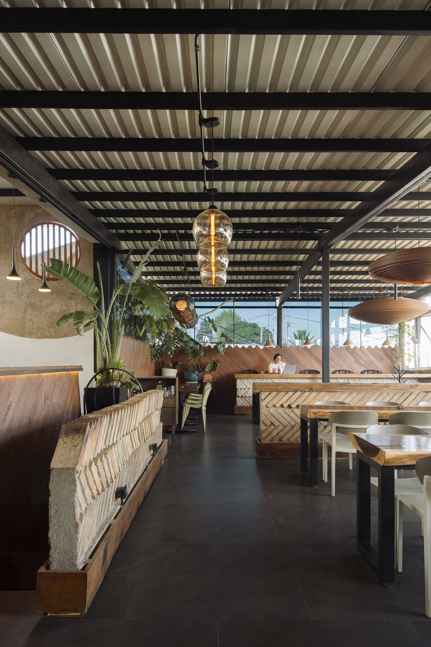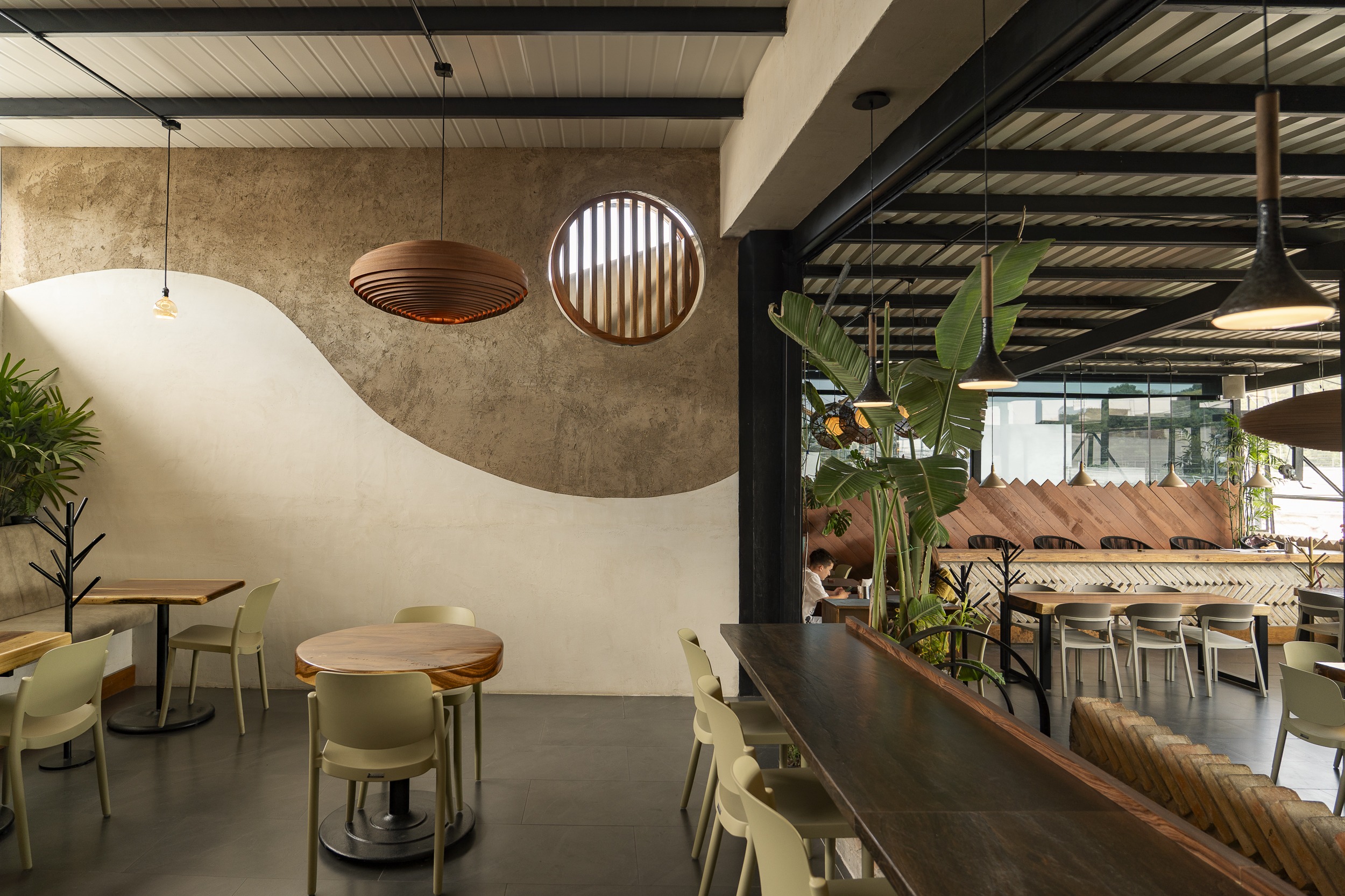 La iluminación natural guía el espacio durante el día, mientras que, por la noche, luminarias orgánicas generan una atmósfera íntima. En esencia, Sémola es un oasis urbano que transforma el acto de compartir pan en una experiencia arquitectónica y gastronómica memorable.