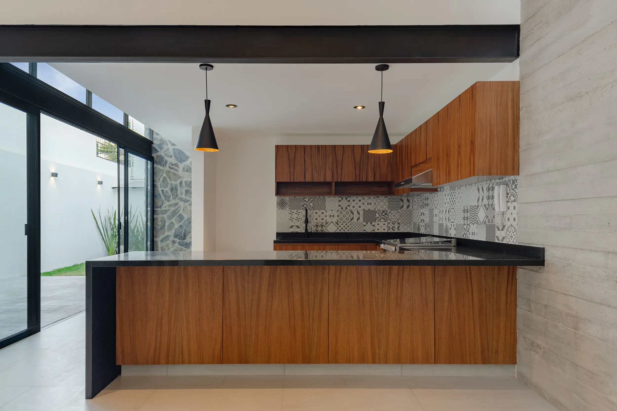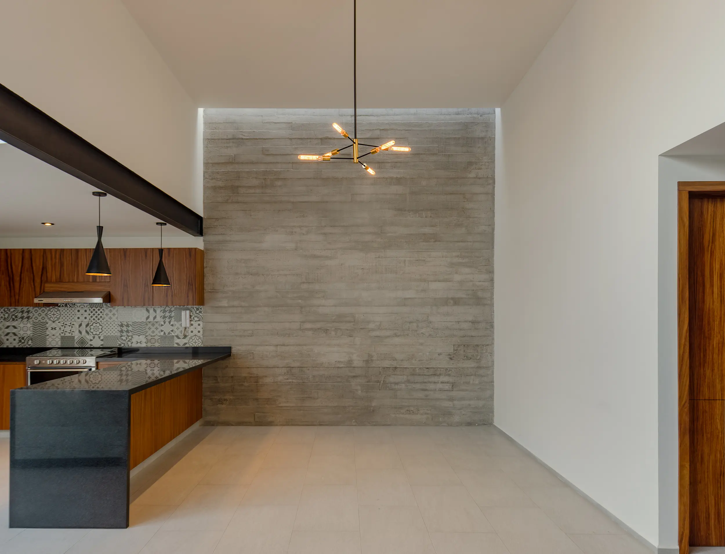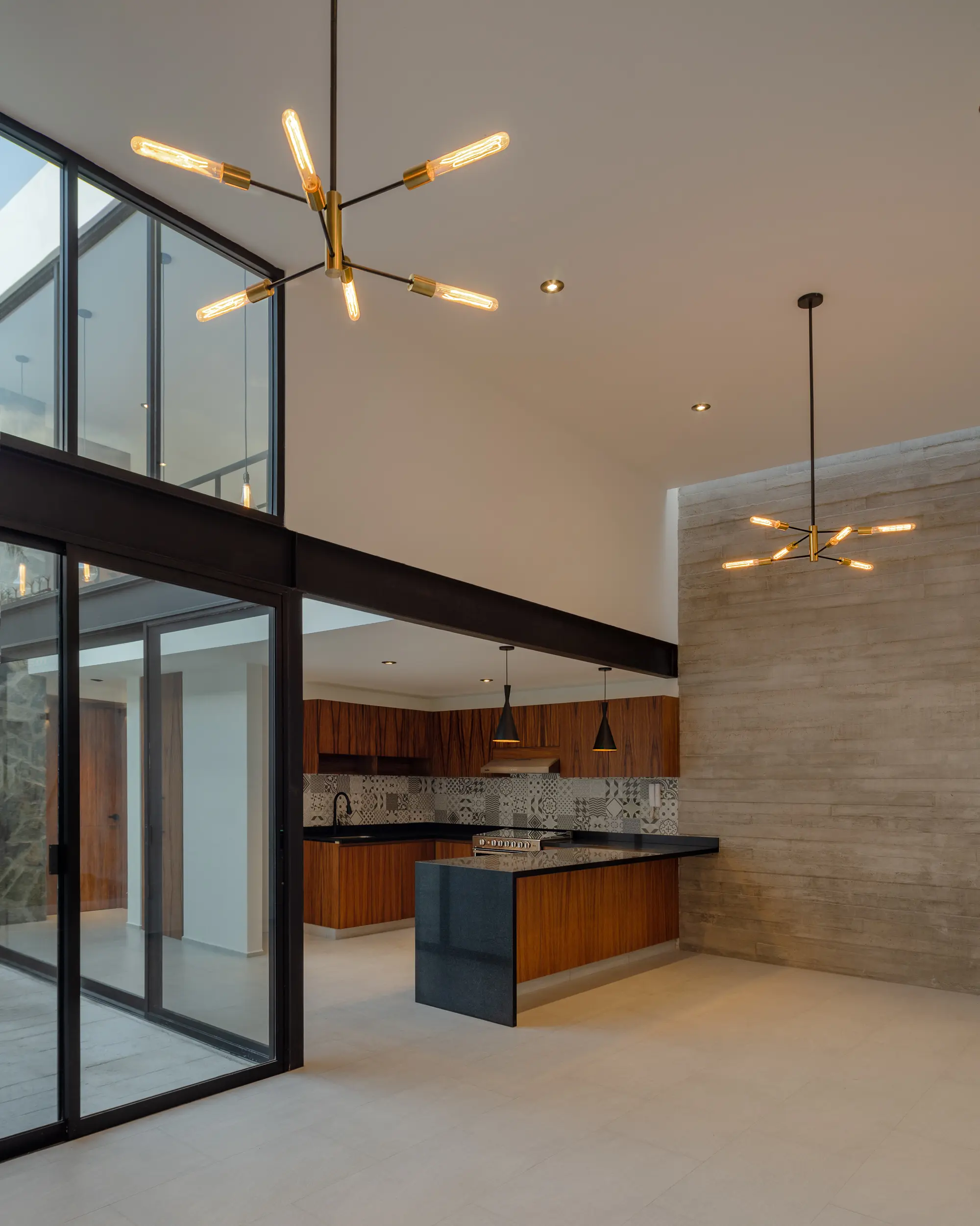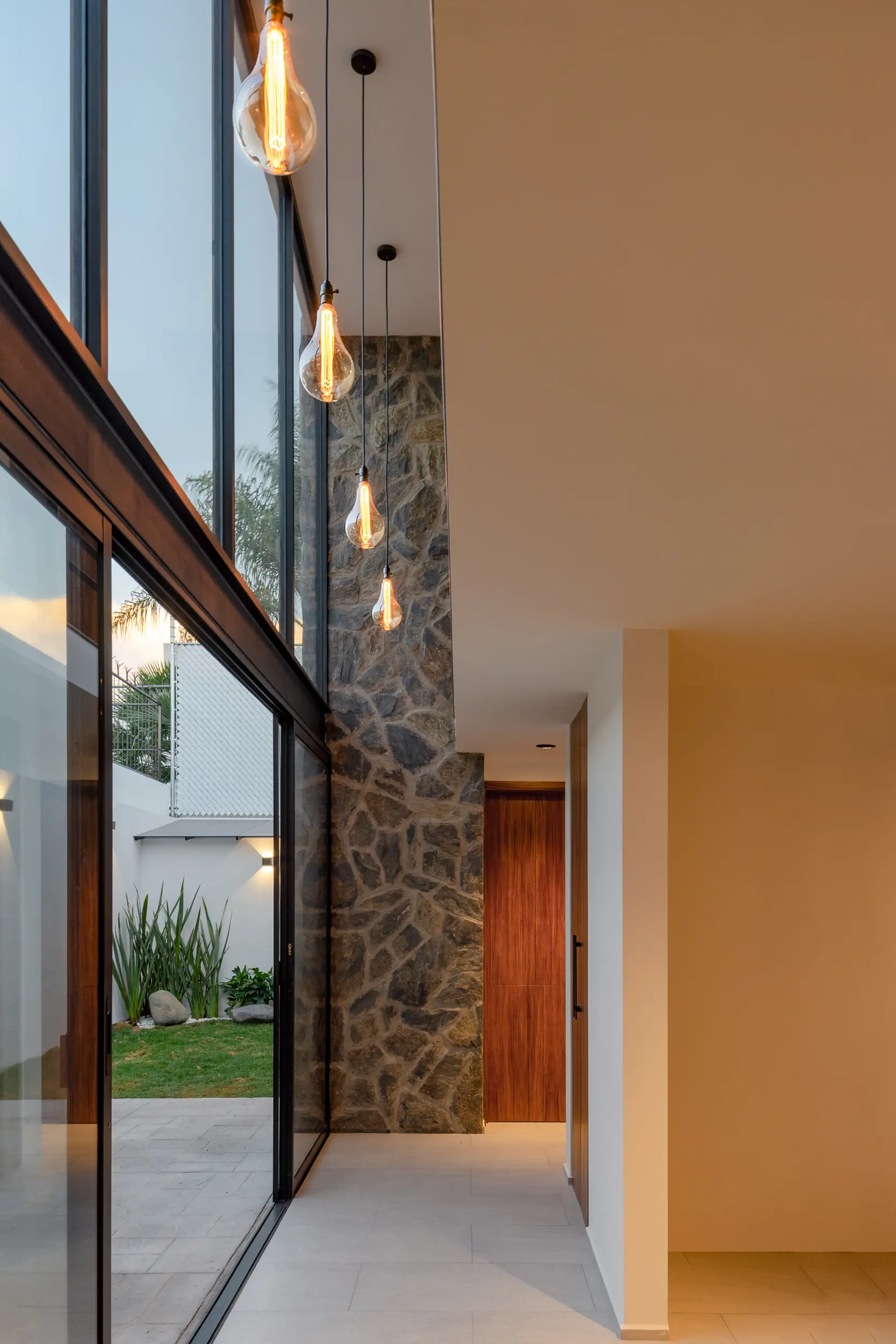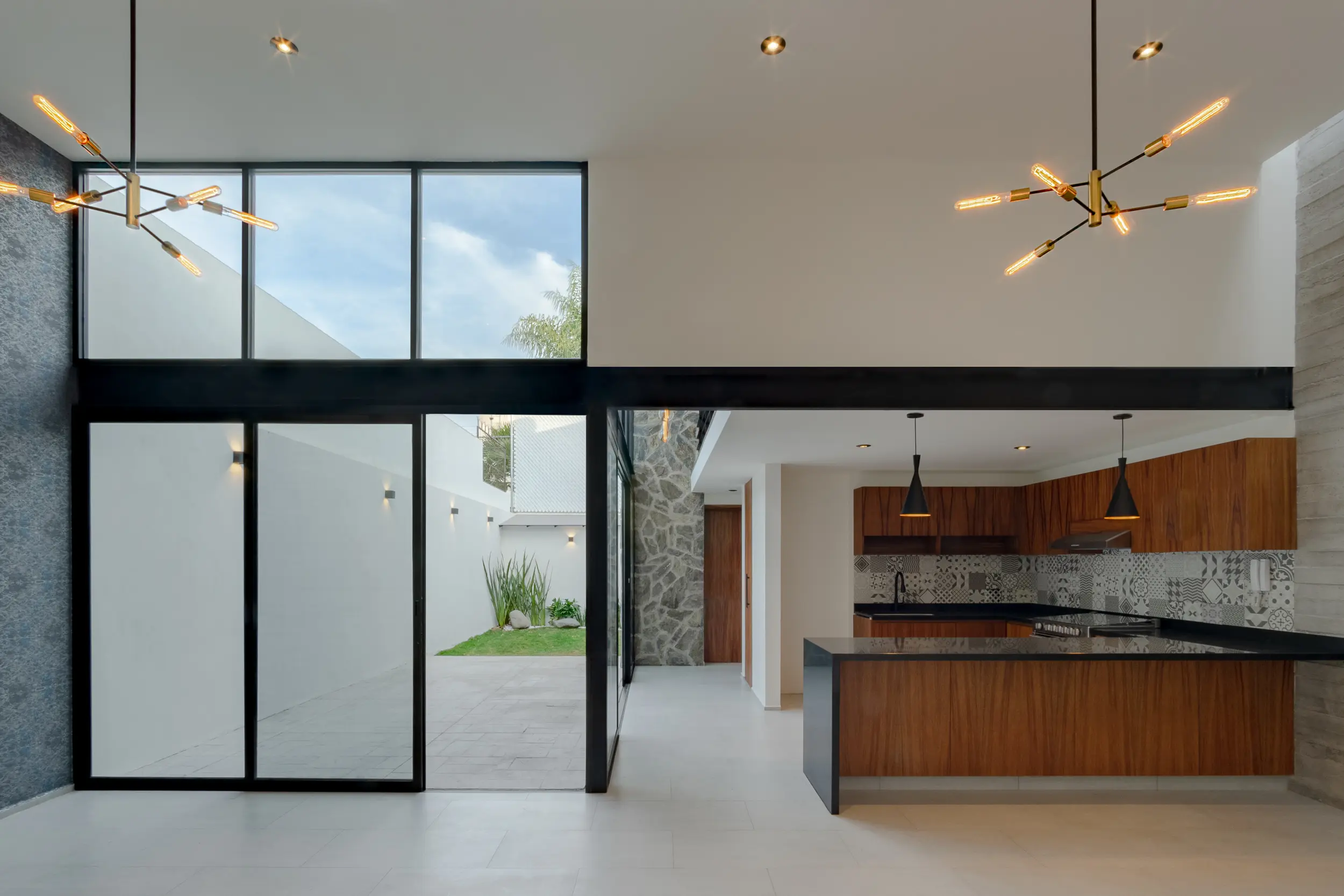 Se propuso un programa arquitectónico donde el juego de alturas toma gran relevancia para lograr una sensación de amplitud en cada espacio y permitir a través de sus volúmenes escalonados, la entrada de luz en diferentes áreas de la casa resolviendo así un espacio térmico, la dinámica de la distribución de las circulaciones nos conduce al área del patio central, elemento que ofrece iluminación y ventilación natural, a toda la vivienda.